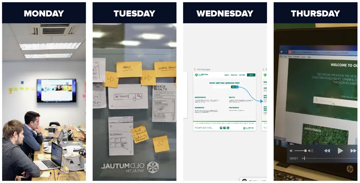 We found a cadence to how we were working together with each week have an expected outcome — the user test. This was a good way of explaining how the design sprint works.