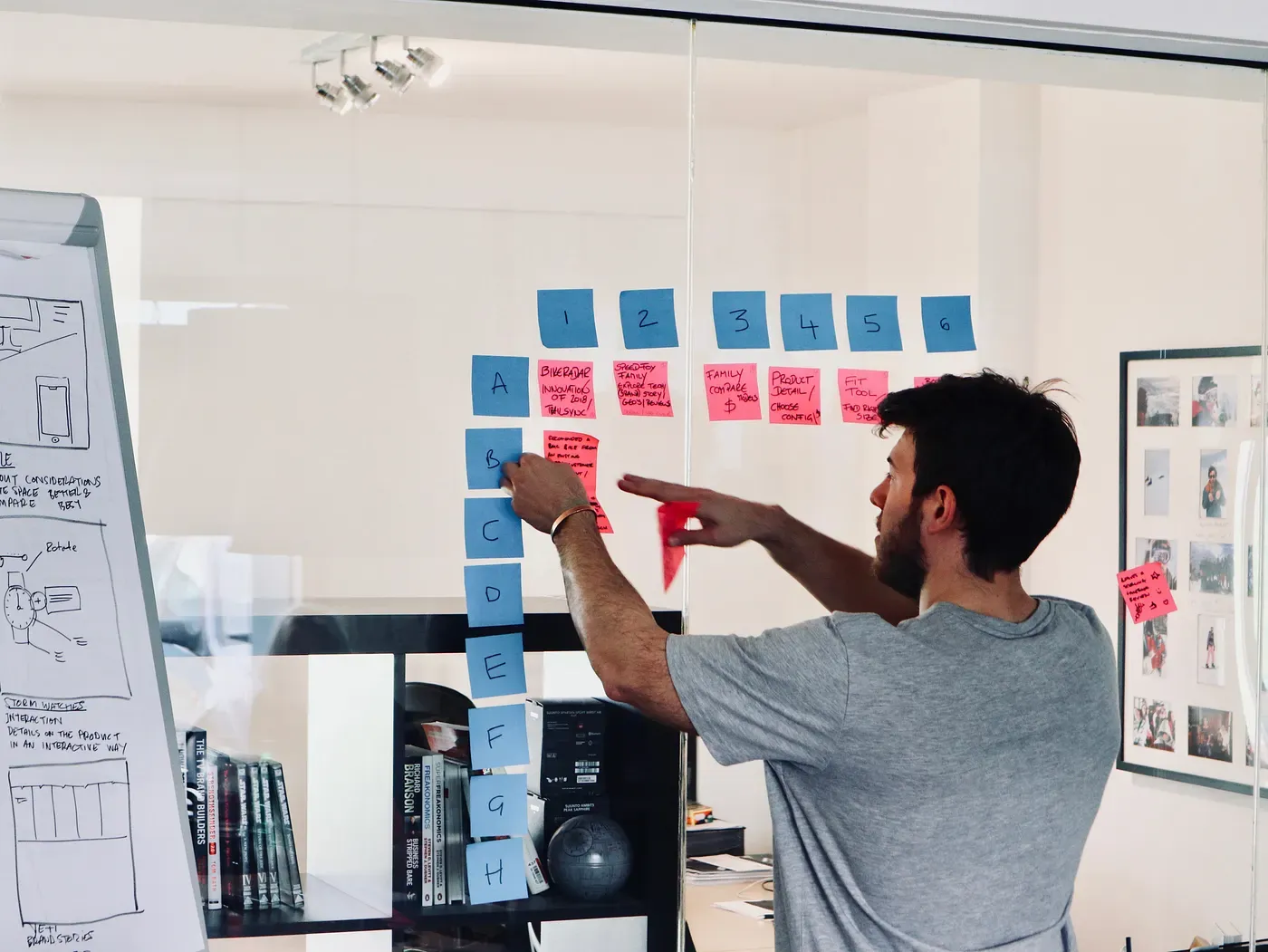 Each team member shared 2 features or patterns each that would inspire and help us solve the target area. Tim drew the ideas on the flipchart.